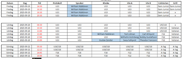Här har ni bemanningsschemat för länscupen, om ni inte kan på utsatt tid, försök byta med varandra men meddela gärna mig.
