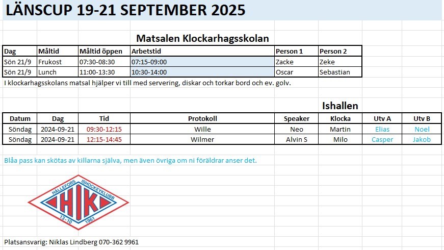 Ni byter med varandra om ni inte kan och meddelar mig så ändrar jag i filen som jag har i bakgrunden.