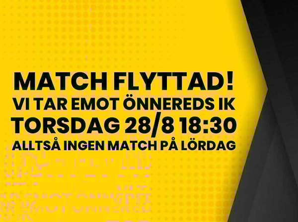 Herrarnas match mot Önnered är flyttad till Torsdag 28/8