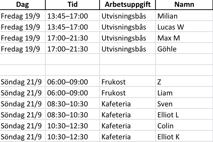 Såg nu att de passen redan var tagna, då tar vi sekretariatet fredag 13:45 😊