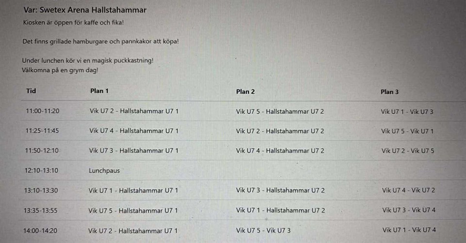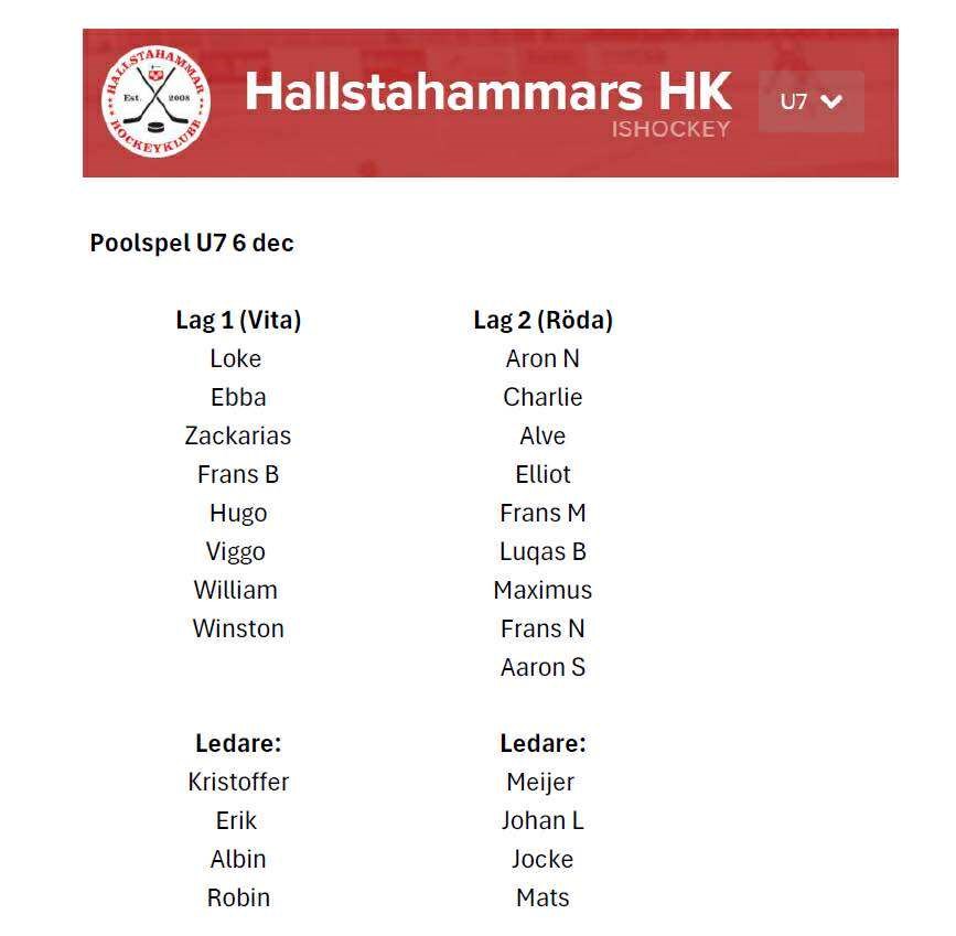 | Poolspel mot VIK | 6 dec, 11:00 |