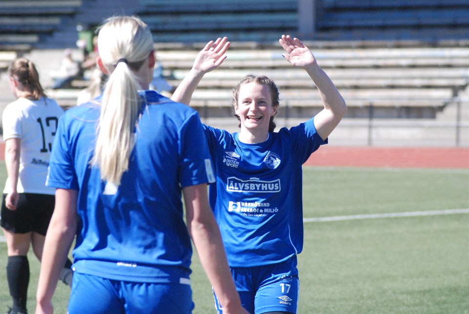 Härnösands SK vann mot Östersunds FK med 1-0 (1-0) i hemmapremiären av division 2 Mellersta Norrland under lördagseftermiddagen. Ett mycket starkt försvarsspel och ett snyggt mål av Sanne Pettersson bärgade för tre poäng på Högslättens IP. - Det är riktigt skönt med tre poäng. Vi visste att de kom ifrån division 3 och att vi absolut inte skulle underskatta dem. En match där vi får ha mycket boll och har mycket lägen, säger lagkaptenen Stina Sjölén. Vilken insats av Härnösands SK denna hemmapremiär. Försvarsspelet var kassaskåpssäkert som Östersunds FK hade svåra problem med att dyrka upp. Det var en match som startade med att båda lagen spelade bollen till varandra inom laget. Kanske lite fördel för HSK inledningsvis. Och i 14:e minuten fick vi se ett riktigt snyggt mål signerat HSK och Sanne Pettersson. Detta 1-0-mål var frukten av ett bra anfallsspel. Maja Karlström fick en djupledsboll att jobba på ute på högerkanten och spelade fram till Sanne Pettersson som hittade nätmaskorna bakom Linnea Lundqvist. - Vi öppnade matchen starkt, spelad enkelt till varandra och hade många långbollar. Just en sådan situation låg bakom målet. Ett instick in till Sanne som kunde göra mål. Ett riktigt snyggt mål där allt började ifrån backlinjen och genom mittfältet och vidare på kanten. Därefter en klassiskt snett inåt bakåt till Sanne, säger Stina Sjölén I den första halvleken så skapade Östersunds FK inte några heta målchanser och detta var mycket tack vare ett mycket bra försvarsspel ifrån HSK. Deras anfall stoppades allt som oftast i HSK:s backlinje. - Vi håller våra markeringar bra och det känns tryggt. De slår mycket boll och det lyckas vi ta ner och samarbetar som ett lag och får bort deras lägen, säger Sjölén. I andra halvlek så var det inget att snacka om. Det var i stort sett spel mot ett mål - Östersunds FK:s mål. Fast samtigt som Härnösands SK skapade den ena målchansen efter den andra så växte ÖFK:s målvakt ut till en levande vägg. Hon gjorde den ena kvalificerade räddningen efter den andra. Linnea Lundqvist stoppade många chanser ifrån HSK. I 52:a minuten så kom första heta målchansen i andra halvlek när Klara Åström sköt och Lundqvist räddade till hörna. Fem minuter senare så fick HSK en frispark som mynnade ut i en ny räddning ifrån ÖFK-målvakten. Minuten senare fick vi se en ny kvalificerad målchans av HSK. Fast återigen en bra räddning till hörna ifrån Lundqvist. I 79:e minuten så fick inhopparen Emma Strömberg också se sig besegrade av ÖFK-målvakten. Hon stod i vägen efter en bra målchans. Ja så såg det ut i andra halvlek. Strömberg hade även ett skott i ribban innan domaren flöjtade av matchen. - Vi kom till många chanser i andra halvlek och vi tryckte ned dem så att de blev trötta och då får vi chansen. Vad tycker du om deras målvakt? Hon gjorde ju några riktig kvalificerade räddningar och stoppade många av era målchanser. - Ja hon gjorde några riktigt fina räddningar. Hon hade mycket räckvidd och nådde mycket. Hon var först på bollarna, säger Stina Sjölén. Nu skapade ni mängder av målchanser, men får inte in bollarna i nät. Kan ni ändå se något positivt i det? - Jo det kan vi. Vi tar med oss det inför kommande matcher. Vi vet att vi är duktiga, det är bara sista tredjedelen där vi behöver trycka in bollen. Hur viktigt var det att ta tre poäng på hemmaplan? - Det är oerhört viktigt att vinna på hemmaplan. Det var som sagt hemmapremiär och kul att spela inför hemmapubliken. Vi är van att spela inför hemmapubliken så det var inte nervöst, det är en trygg plats för oss. Så varför vinner ni matchen idag? - Vi är självsäkra, vi är duktiga och spelar bra tillsammans. Kämpar och spelar enkelt, avslutar Stina Sjölén. DIVISION 2 MELLERSTA NORRLAND Härnösands SK-Östersunds FK 1-0 (1-0) Mål: 1-0 (14) Sanne Pettersson