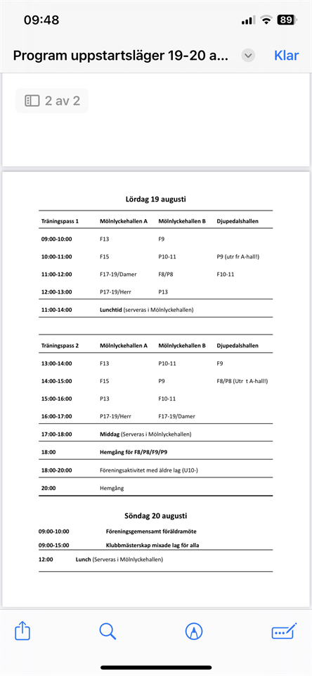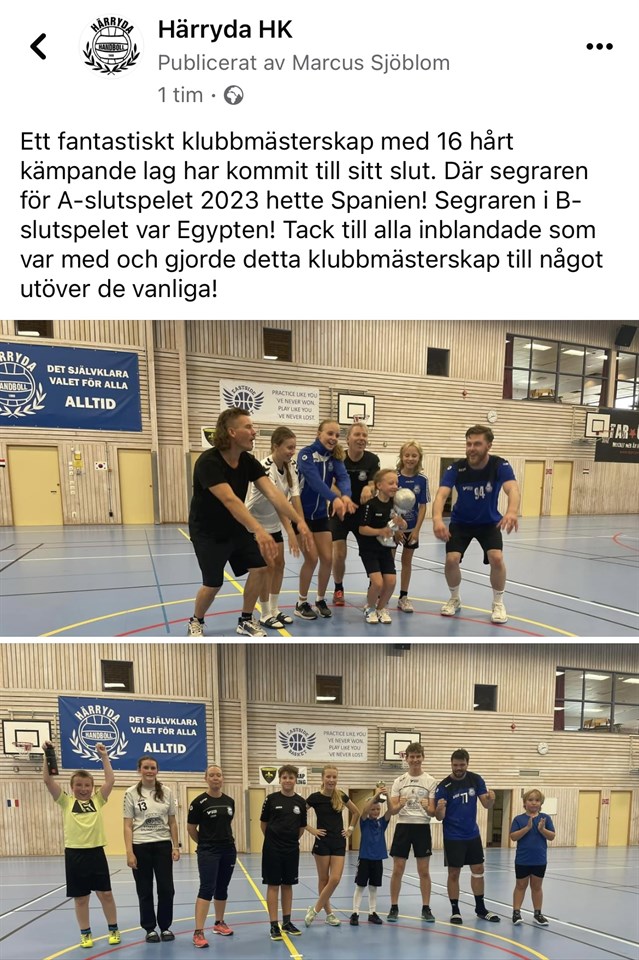 Hej! Här nedan ser ni mer information om uppstartslägret som är till helgen. Lördag Ta med träningskläder, vattenflaska, badkläder och handduk samt ombyte för utomhus-lek. Kl 8.45 samling i Mölnlycke B hallen Kl 9.00-10.00 träning i Mölnlycke B hallen Kl 10.00-11.30 bad i Örtjärn i Nysäter Kl 11.30-12.30 lunch i Mölnlyckehallen 13.00-14.00 träning i Djupedalshallen 14.00-17.00 gemensamma aktiviteter, mer info på plats 17.00-18.00 middag Mölnlyckehallen 18.00 hemgång från Mölnlyckehallen Vi använder tränarnas bilar att köra mellan aktiviteterna. Söndag Härryda HKs klubbmästerskap äger rum med åldersmixade lag! Hit är alla spelare och ledare välkomna, från 8 år till senior. Vi ser gärna att föräldrar och familj agerar publik. Klockan 9:00 - 10:00 på söndagen sker i samband med samlingen ett obligatoriskt, föreningsgemensamt föräldramöte. En viktig del i HHKs utvecklingsarbete. Inför detta möte ska alla läsa igenom våra policydokument som är uppdaterade och de ansvar som finns inom klubben. Dessa och all annan klubbinformation finns via: https://www.laget.se/HarrydaHK/Document Välkomna!