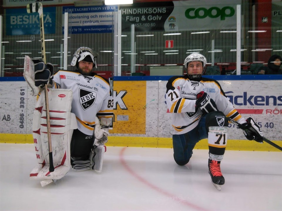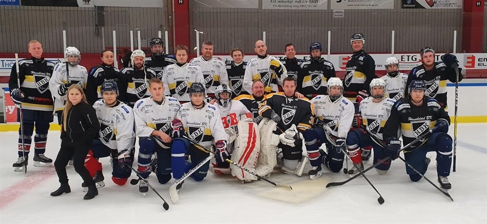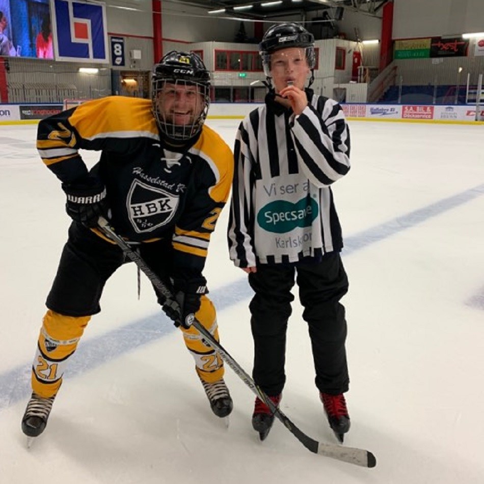 Ikväll alltså en fredagskväll kl 20:10 när vi gick på is var det mycket ungdomar och yngre ungdomar som var med och spelade hockey med HBK. Det är underbart vad idrotten kan sammanföra ung som lite äldre kille som tjej den yngsta på isen ikväll är 13 år och den något äldre som är 56 år, vilket inte märks varken på isen eller i omklädningsrummet utan tvärtom dom yngre ger inspiration och de lite äldre med erfarenhet av livet, det är när idrotten är som bäst. Det är väldigt roligt att se att man då kan spela far och söner i samma lag på isen som Glenn gjorde med sönerna Lucas & Simon, samt syskonen Elias, Elon, Emon Kulmala samt lillasyster Enya skötte båsdörren som annars också spelar hockey. Bröderna Johannes och Oscar Lindahl spelade ikväll i samma lag. Axel Åstrand spelade mot morbror Rickard Nilsson. Hade någon sagt till mig/oss år 2012 när vi startade detta lag att det skulle vara så mycket folk om 8 år på fredagarna så hade man undrat hur tänker du nu. Undertecknad tror och hoppas att vi kommer fortsätta i samma anda. //Oskarsson.
