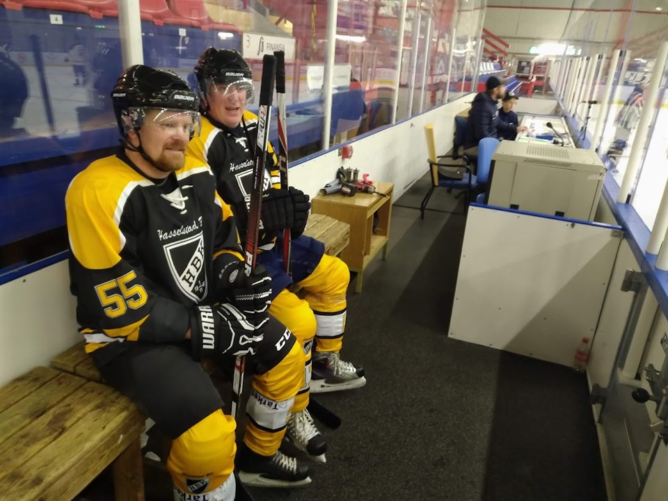 Söndagens mach vann HBK 1 med 7-4 ( 1-3, 4-0, 2-1) Det var en match som svängde fram och tillbaka. Domarna Emil Petersen, Liam Sandén, Oliver Roos & Valle Lindström gjorde en grym insatts och klockan skötte Noah Ross på bästa sätt. Detta var säsong nt 10 i ordningen sedan starten av detta lag 2012 Säsongen 21/22 blev det 28 matcher vilket är bra med tanke på pandemin. Vinnare blev HBK 2 HBK 2: 43 poäng och målskillnad + 5 HBK 1: 37 poäng. Flest matcher denna säsong spelade #17 Rille Hammar han spelade hela 27 av dessa 28 matcher så en närvaro på 96% vilket är stort! På bilden ser man Rille Hammar & Jesper Sörlin som passar på att vila lite i ett bås på andra sidan isen. Nästa vecka börjar förberedelserna och uppladdningen inför kommande säsong. //Oskarsson.