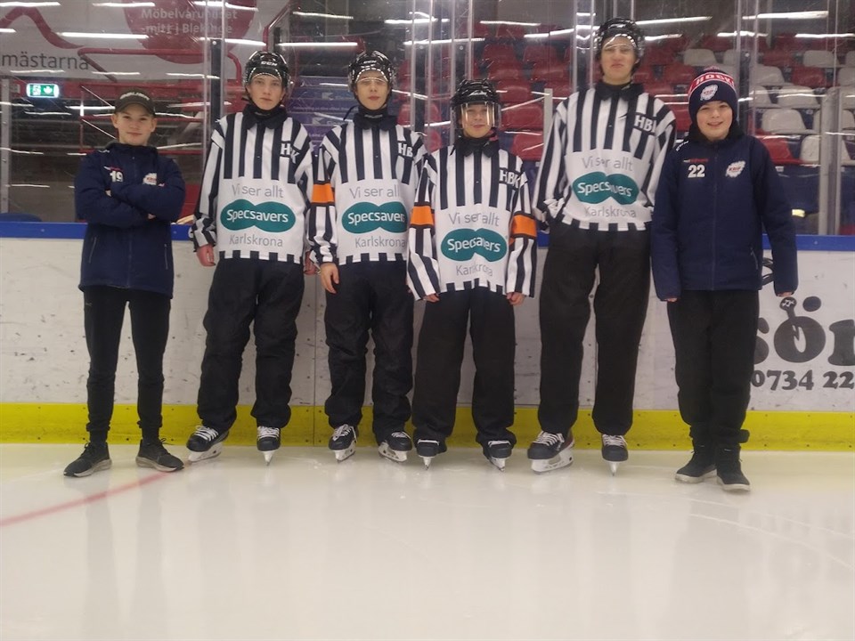 Matchen igår Vann HBK 1 med 12-10 ( 3-4, 4-3,5-3) det var en jämn match där tillslut HBK 2 drar längsta strået och vinner tillslut med 2 puckar. Albin Jaxér som är son till legenden Joakim Jaxér gjorde igår debut i HBK tröjan efter några års uppehåll. Albin är fostrad i Karlskrona HK där han började spela som 6 åring och han spelade sedan där fram till U 14, då han sedan valde att lägga av med hockeyn. Nu har Albin som 19 åring fått tillbaka suget efter hockeyn igen och var igår med och spelade sin första internmatch, och han gjorde det riktigt bra och tyckte att det var roligt att vara på isen igen han fick dessutom spela i samma lag som sin pappa vi hoppas att Albin kommer att spela flera matcher med oss. Ja måste erkänna att det är roligt att de yngre kommer med sina föräldrar och spelar tillsammans i Hasselstad. Domarna Emil Petersen, Valle Lindström, Noah Roos & Ante Lindström gjorde en riktigt bra domarinsats under gårdagens match. Klocka & statistik skötte Liam Sandén på bästa sätt. //Oskarsson.