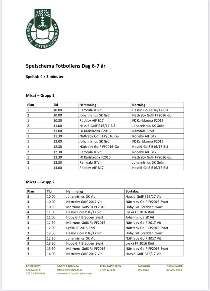 Spelschema fotbollen dag, söndag. B15/16/17 13 maj 2023 0kommentarer