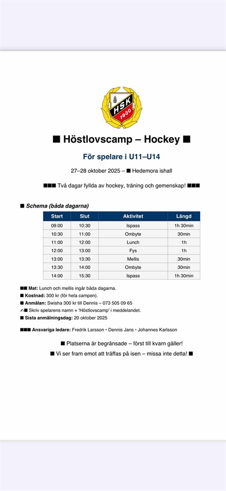 Följ oss för uppdateringarHSK Röd (hemma) | 12 okt, 09:00 |