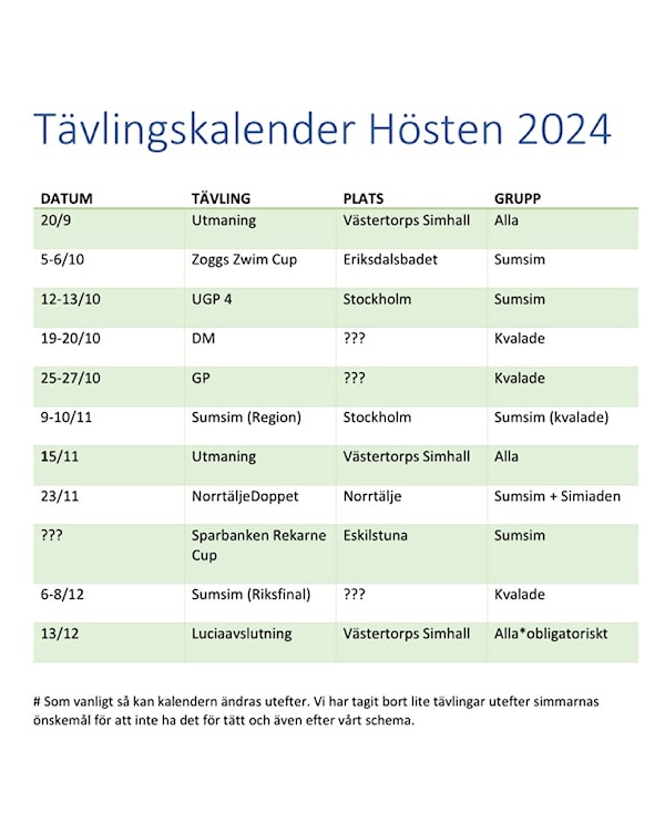 Här finns en bild på tävlingskalender. Men ändringar kan Komma.