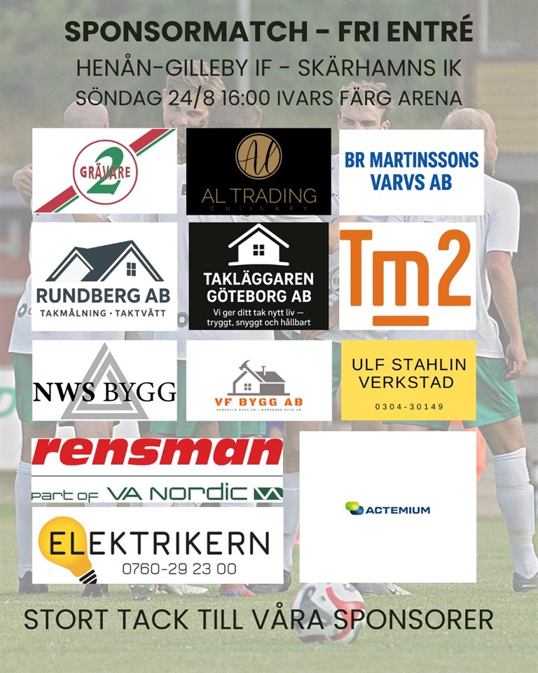 Den 24/8 kl 16:00 är det sponsormatch på Ivars Färg Arena mellan Henån/Gilleby och Skärhamns IK. För att göra denna dag även rolig för alla barn och ungdomar i Henåns IF vill vi nu bjuda in er till en femkamp. Vi samlas kl 13:00 på IFA och delar in oss i olika lag och gör sedan en en femkamp tillsammans. Förhoppningsvis stannar alla kvar efter femkampen och hejar på våra seniorer. Seniorlag Herrar 19 aug 0kommentarer
