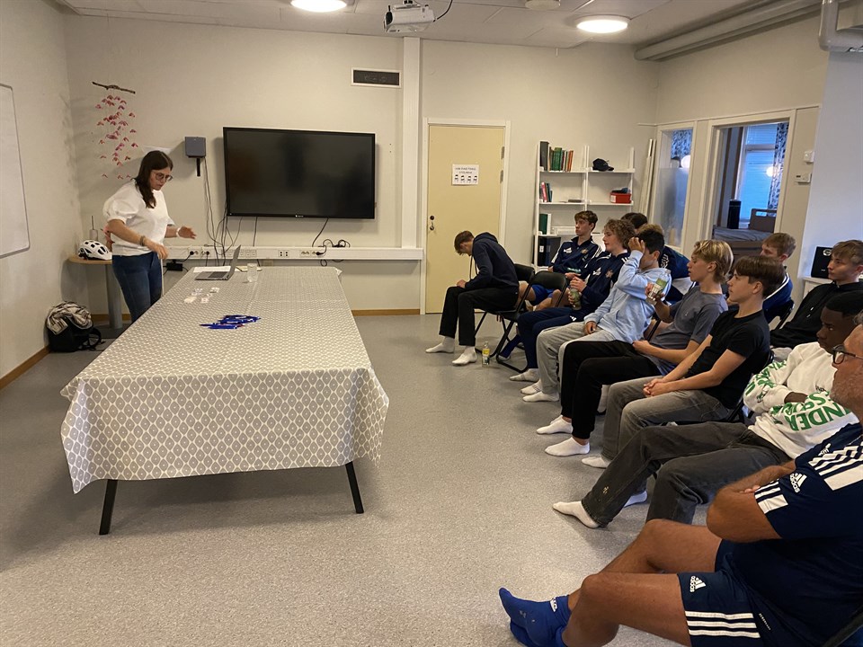 Vi har under hösten en viktig process i föreningen! Där vi träffar alla lag från A-lag ned till P/F -11 och pratar psykisk hälsa och friskfaktorer. All forskning visar att unga människor mår allt sämre idag! All forskning visar också att fysiskt träning och att finnas i positiva sociala sammanhang, är två viktiga friskfaktorer. Då känns det viktigt att vi som förening vill göra det lika naturligt att rehabilitera en skada själ, som att rehabilitera ett skadad knä. Men då är en viktig del att göra det mer pratbart att vi inte alltid mår bra mentalt, av olika anledningar och att det är en fullt naturlig del att det kan vara så i perioder. Att skapa en miljö, där man alltid känner sig välkommen, även om förutsättningar av olika anledningar kan vara besvärliga. Nu i onsdags i förra veckan så hade vi besök av Eva Andersson från den ideella föreningen Hjärnkoll. Som delade med sig av sin resa att bli frisk från psykisk ohälsa. Men också att bjuda in grabbarna till dialog kring frågor kring hur vi tänker/känner, hur det påverkar en själv och andra. Att öka medvetenheten kring psykisk hälsa och i nästa steg att våga fråga om någon inte mår bra, är två viktiga saker för att få fler att må bättre. P-16 kommer kommande veckorna att även träffa Unghästen, som kommer att genomföra en föreställning + dialog kring psykisk hälsa. Ni som vårdnashavare kommer att bli inbjuden till föreläsning med Eva och föreställning med Unghästen den 27 september!! Då vi ger även alla vårdnadshavare i föreningen en möjlighet att ta del av det vi arbetar med i föreningen. Vi återkommer med en specifik inbjudan till det evenemanget. Skön seger i går borta mot Ersboda med 3-0! Bra även att åka stor buss, då vi delade kostnaderna med damjuniorerna, som åkte med oss i bussen. Vi bjöd även laget på middag på McDonalds efter matchen. Nu på söndag ett härligt derby, 19.15 mot KAIF på Sörvalla! Välkomna! /Krister