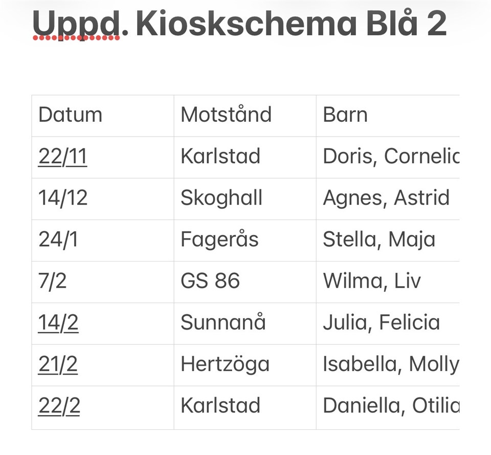 | 8. | (140) | IFK Hammarö P9 (födda 2016) |