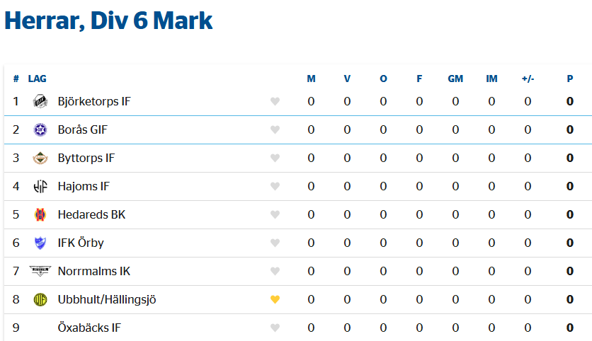 | 8. | (11) | IBK Lockerud Mariestad |