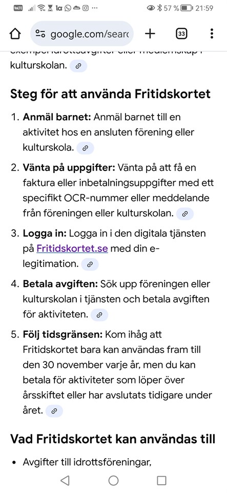 | 22 okt | Fritidskortet |