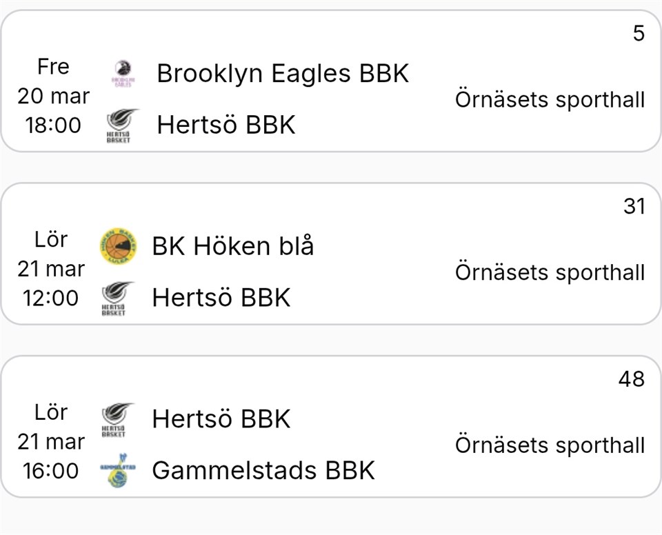 | Träning | 25 mar, 18:15 |
