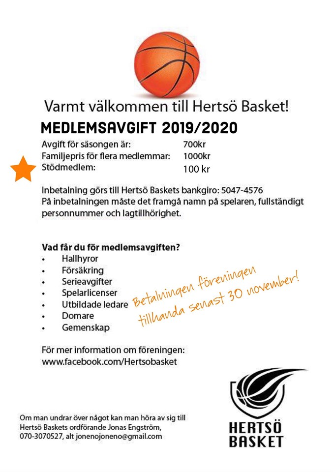 Hej! Det börjar dra ihop sig till medlemsavgifter! Bifogat finner ni detaljerna!
