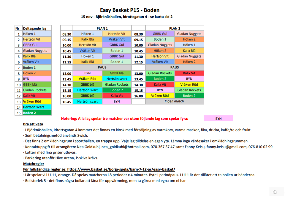 Här kommer lagindelning och spelschema inför helgens sammandrag. Vi spelar i Björknäshallen. Hertsön Vit spelar på förmiddagen, samling 08:00 Jakob Alejandro Christopher Liam E Moses Chrisnovie Hertsön Svart spelar på eftermiddagen, samling 13:15 Liam T Noah Elvis Pontus Ludvig Theodor Som vanligt säljs det korv, fika och mackor. Kommer även vara ett lotteri. Parkering finns utanför Hive Arena, P-skiva krävs. P-15 / 16 11 nov 1kommentar