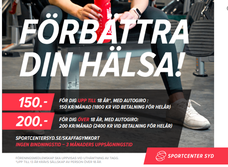 • Erbjudande Gymkort på SportCenterSyd för medlemmar
