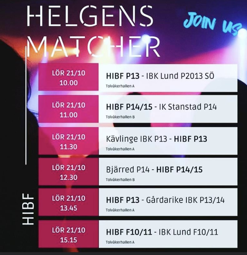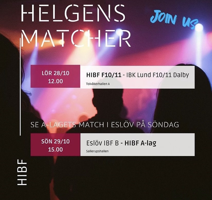 Kom och titta och heja på våra spelare på helgens hemmamatcher!!! Hofterup IBF 19 okt 2023 0kommentarer