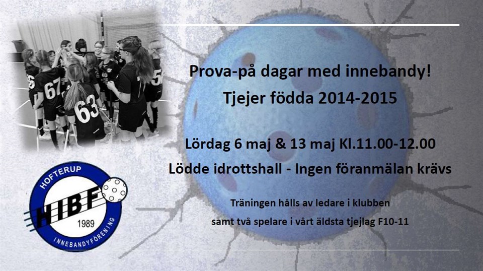 Nu ska vi ha 2 st prova-på dagar för alla flickor födda 2014-2015. Lördag 6 maj & 13 maj kl. 11.00 i Lödde idrottshall. Ingen föranmälan krävs. Välkommen! Hofterup IBF 14 apr 2023 0kommentarer