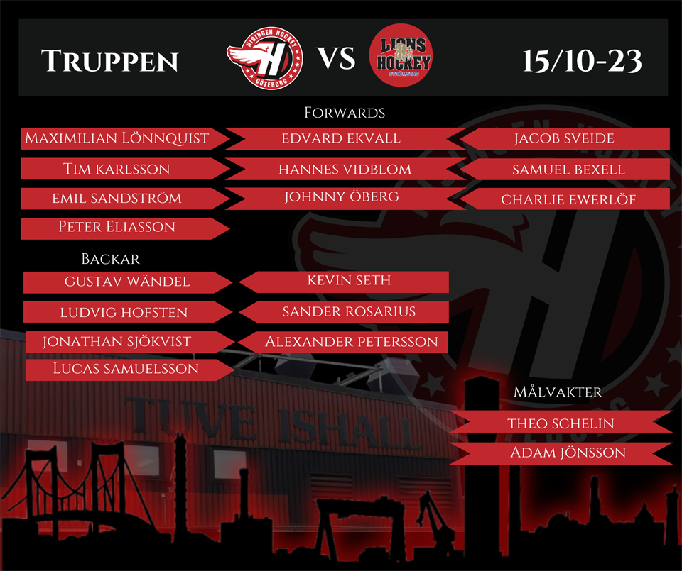 Laget i dagens match 15/10-23