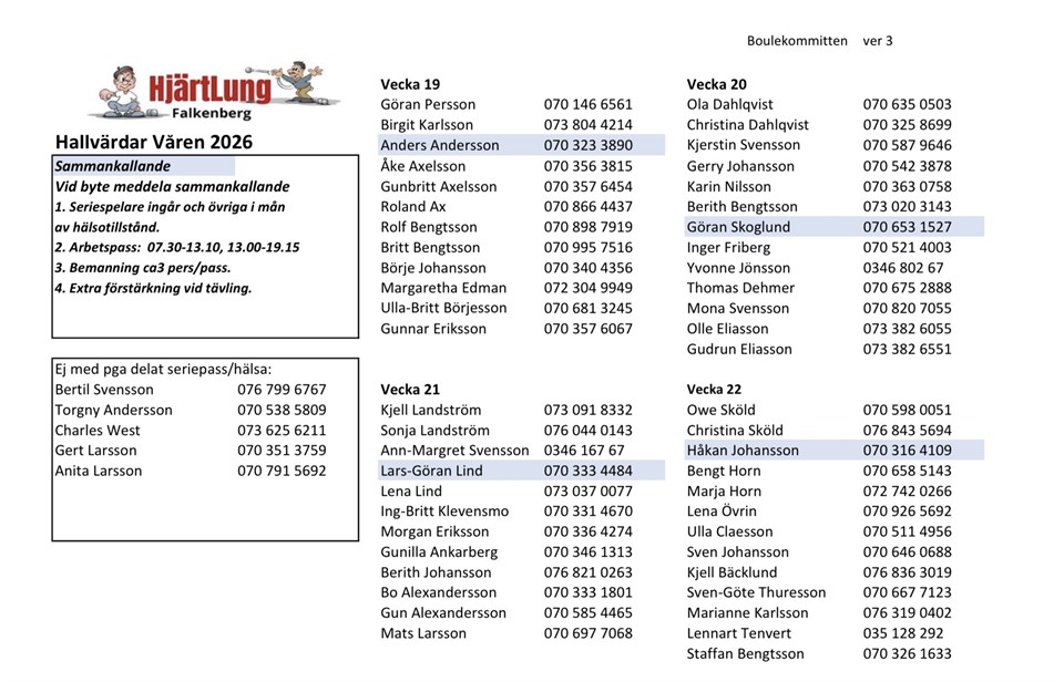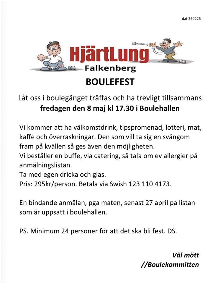 Fyll i din e-postadress för gratis uppdateringar om HjärtLung Boule Falkenberg Aktiva