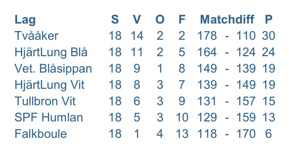 | 4. | (34) | Kvibille BK Herr |
