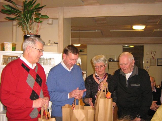 I fredagskväll hade ca:50 medlemmar mött upp på Hjärt o Lungboulens avslutningsfest.Det började med 10:a spel och poängpromenad.10:a spelet vanns av Kjell Landström tätt följd av äkta hälften Sonja,övriga pristagare blevEbbe,Ulla-Bella,Charles och Arne.Poängpromenaden vanns av Gösta Johansson efter särspel.Efter detta blev det god mat,kaffe och allsång. Lagledarna för de 3 lagen uppvaktades med blommor för ett gott jobb! (Se bilden) För den glada och trevliga festen,tackar vi BOULEKOMMITTEN för ett mycket gott arbete! Genom GERT.