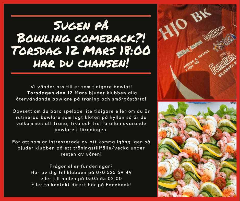 Klicka på bekräftelselänken i det mejl vi skickat dig för att börja ta emot uppdateringar från Hjo Bowlingklubb.
