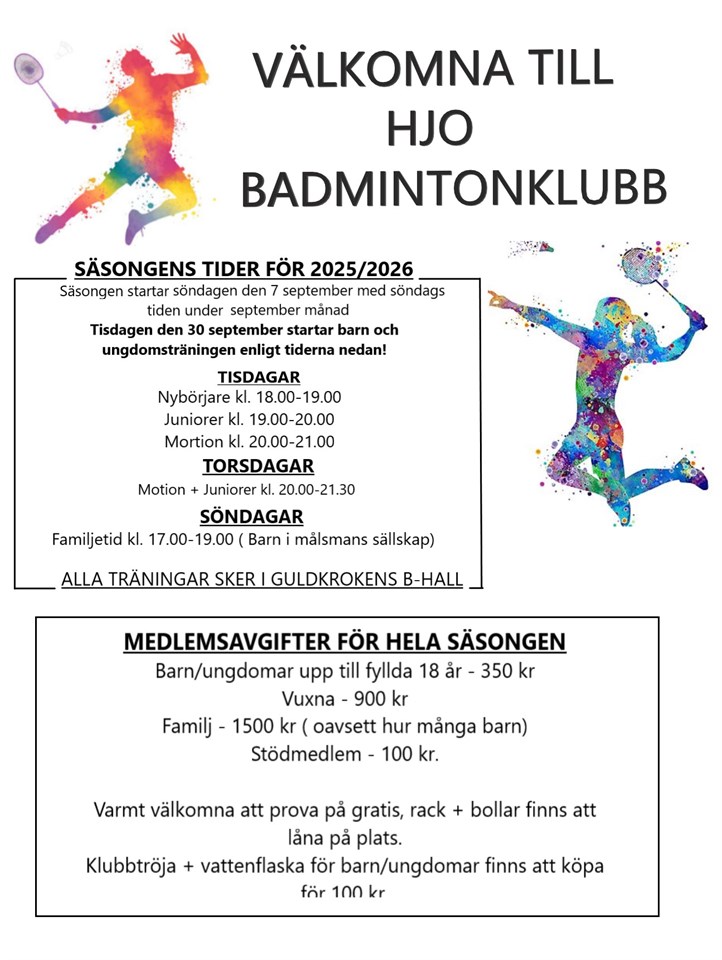 Fyll i din e-postadress för gratis uppdateringar om Hjo Badmintonklubb