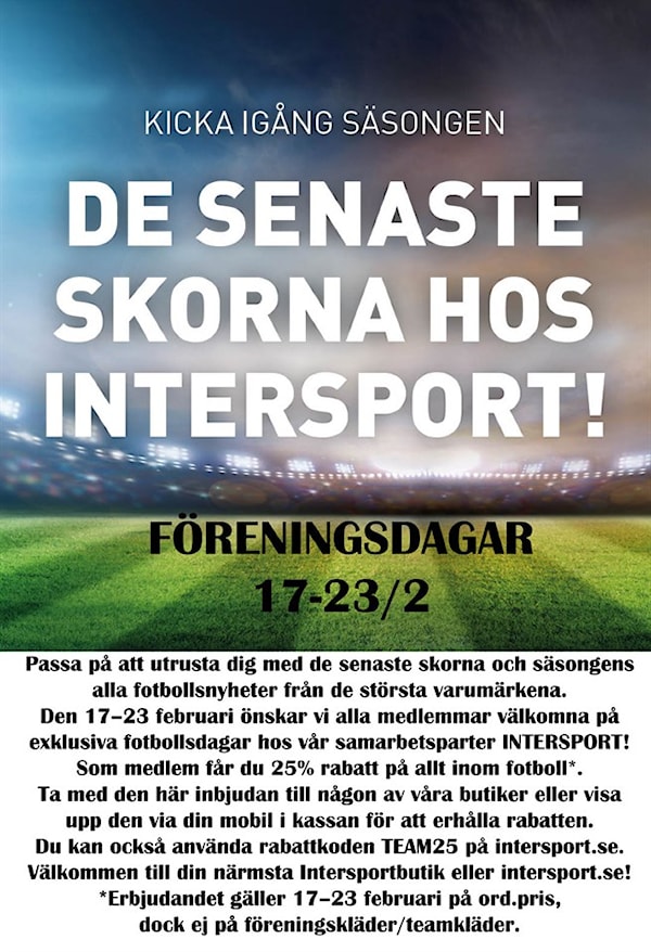 Den 17–23 februari önskar vi alla medlemmar välkomna på exklusiva fotbollsdagar hos vår samarbetsparter INTERSPORT!