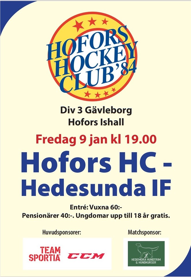 | Hedesunda IF (hemma) | 9 jan, 19:00 |