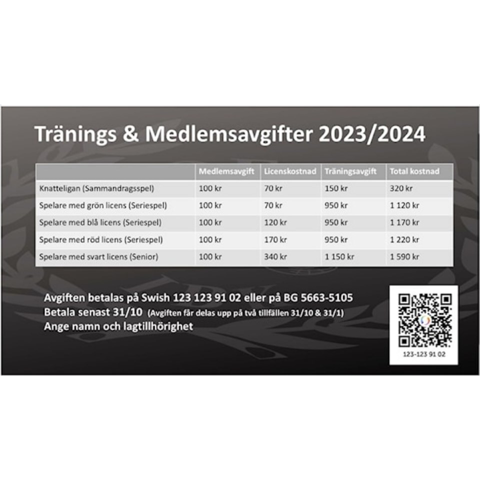 • Tränings- och medlemsavgifter 23/24