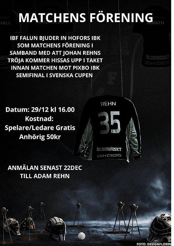 IBF Falun har bjudit in oss till hyllningen för Johan Rehns tid i IBF Falun. Eran uppgift som ledare för varje lag är att kolla hur många som vill följa med. Skicka sedan till mig hur många ni blir.