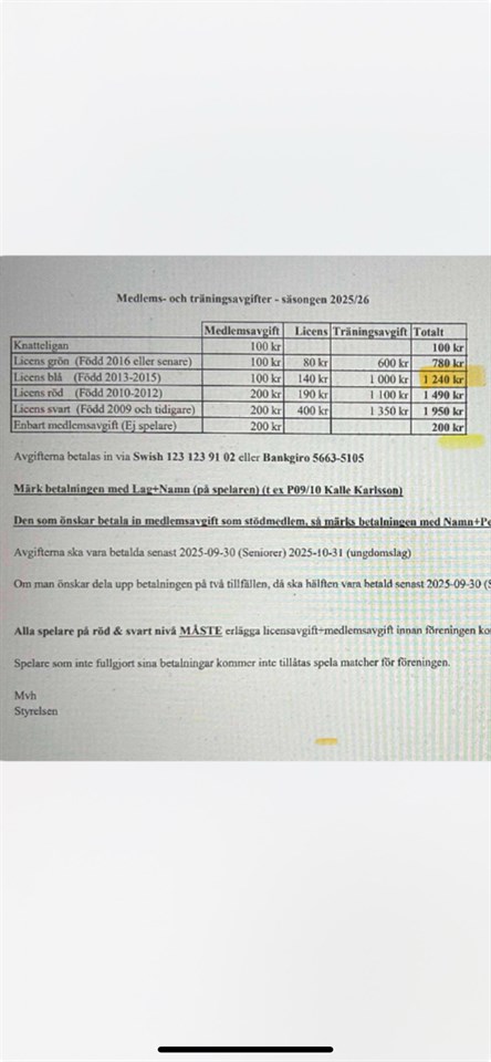 Här kommer information kring inbetalning av medlems- och träningsavgift för denna säsong.