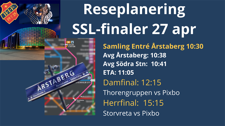 Vi åker tillsammans tillbaka mot Årstaberg. Oklart i nuläget om tider. Vi får uppdatera via Whatsapp.