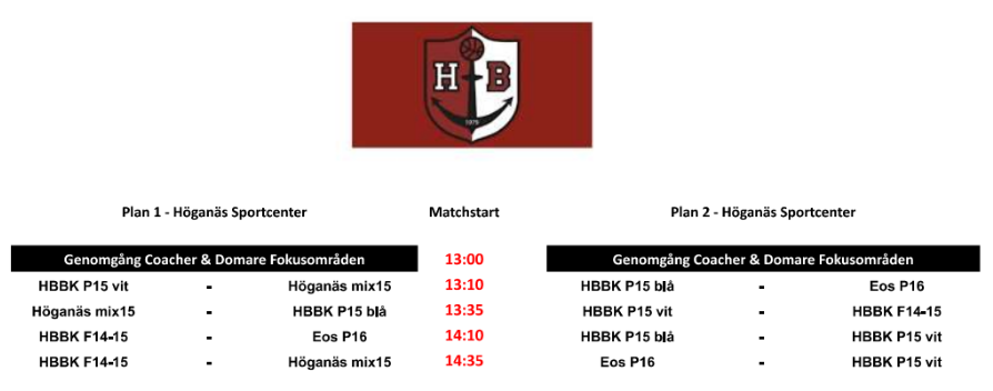 • Spelschema för matchsammandrag i Höganäs 6/10
