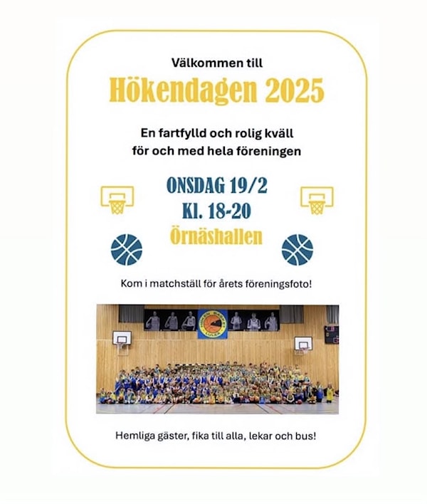 På onsdag 19/2 kl. 18-20 är det dags för Hökendagen i Örnäshallen. Det blir lekar och fika tillsammans med hela föreningen.