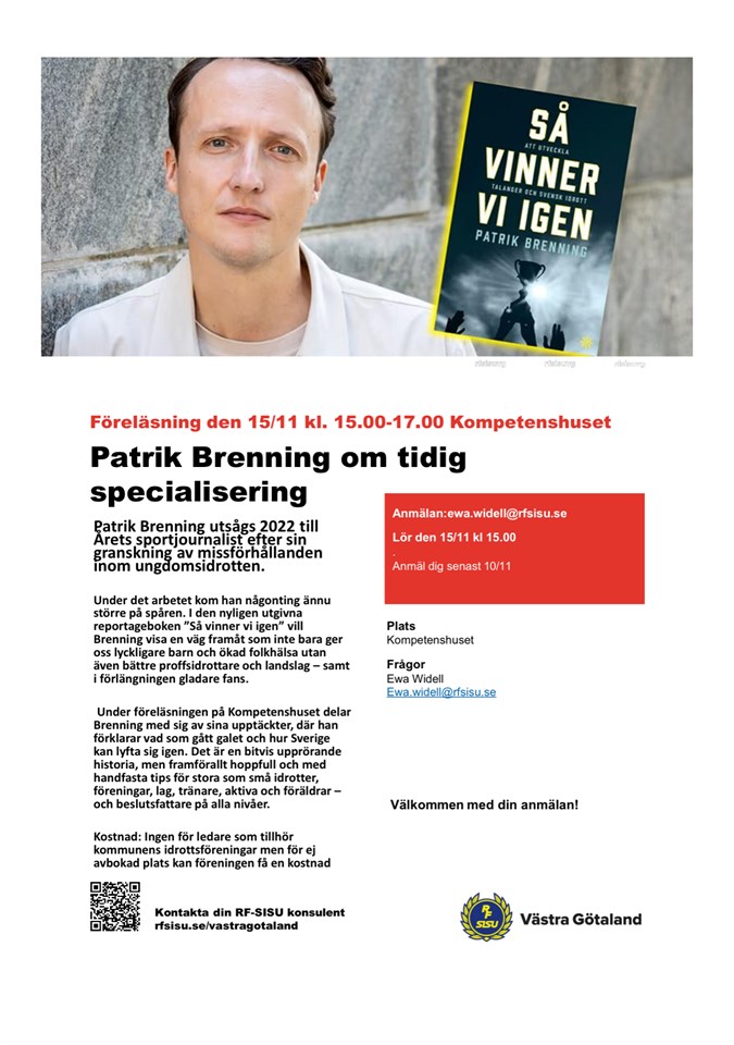 Vi tipsar om en viktig och inspirerande föreläsning med Patrik Brenning (Årets Sportjournalist 2022) om tidig specialisering inom ungdomsidrotten.