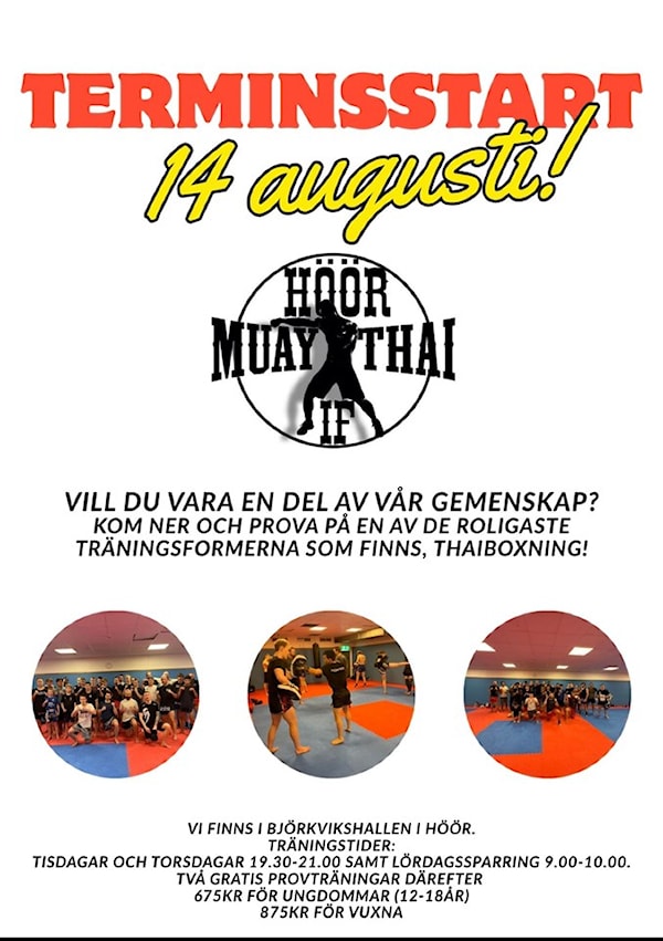 Alla nya som gamla medlemmar är välkomna ner till oss på Höör’s Muay Thai IF.