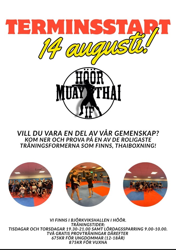Alla nya som gamla medlemmar är välkomna ner till oss på Höör’s Muay Thai IF.