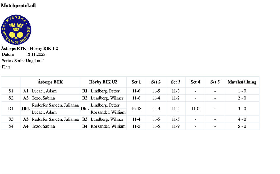 Här kommer resultatet från ungdomsserien som spelades idag (18/11/23) Pingis 18 nov 2023 0kommentarer