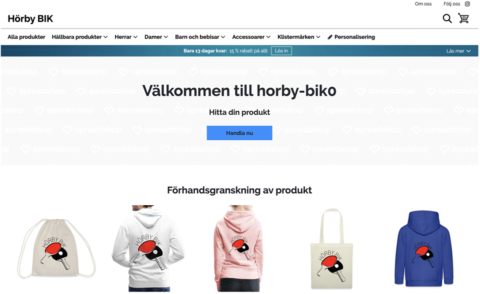 Nu har vi öppat upp vår egna Spreadshop där ni kan handla produkter, t.ex en hoodie med loggan, vattanflaska, ryggsäck och mer. Kolla gärna om ni skulle vilja ha något, ni har 15% rabatt som varar i ca två veckor. Nästa nyhet visas hur ni hittar Spreadshop i laget Pingis 12 nov 2023 0kommentarer