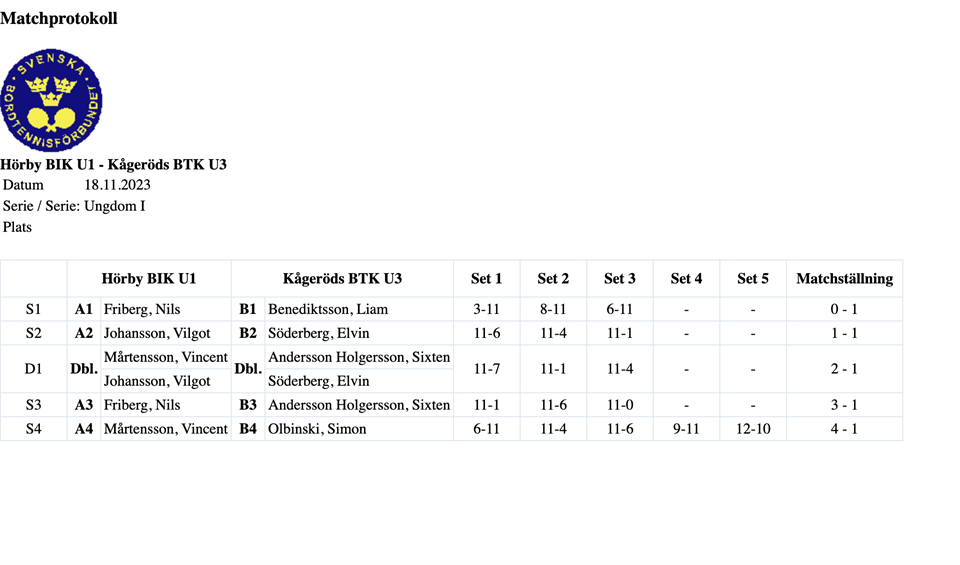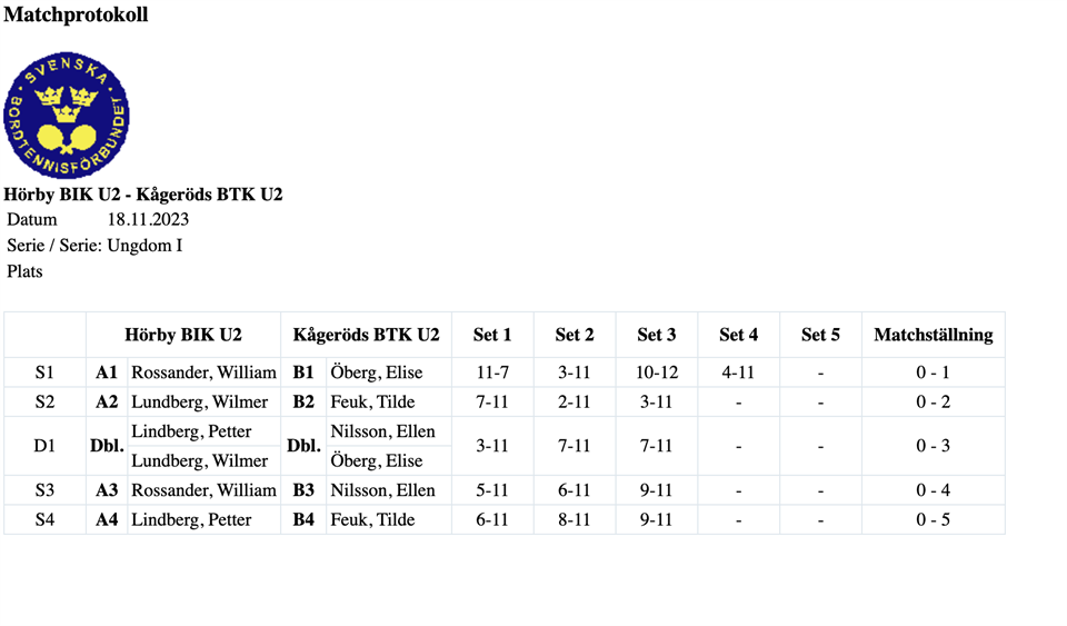 Här kommer resultatet från ungdomsserien som spelades idag (18/11/23) Pingis 18 nov 2023 0kommentarer