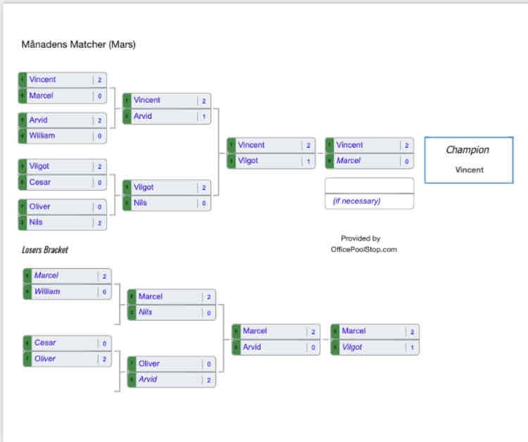 Från och med nu så kommer resultatet från Månadens matcher ligga under nyhetsflödet. Här är resultatet från Månadens matcher (Mars) Pingis 8 apr 2023 0kommentarer