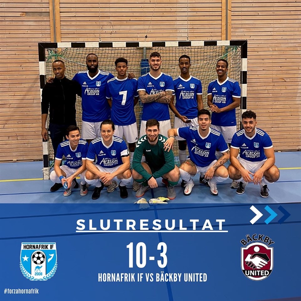Igår tog vi oss an Bäckby United hemma på Pettersberg. En match som resulterade i ännu en seger, 10-3(4-1)🔥🔥 Vi inkassera ytterligare 3 poäng i kampen om en kvalplats till division 1. Gårdagens målskyttar: x2 Mustaf x2 Sharan x2 Ahmed Ernest Bender x2 Eduardo Vi vill passa på att rikta en stor eloge till @nicholasmalki som gör sin debut i Hornafrik tröjan och som står för en suverän insats i mål. Vi tackar även @backby.united för matchen och önskar dom lycka till i fortsättningen. Nästa match som dessutom blir sista matchen innan uppehållet spelas den 12 december 10:00 mot BK30. #forzahornafrik 💙💙💙 Herrlag 4 dec 2021 0kommentarer