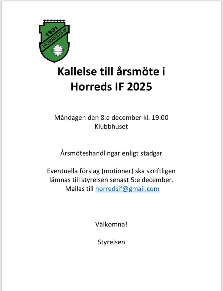 Kallelse till årsmöte – Horreds IF 2025
