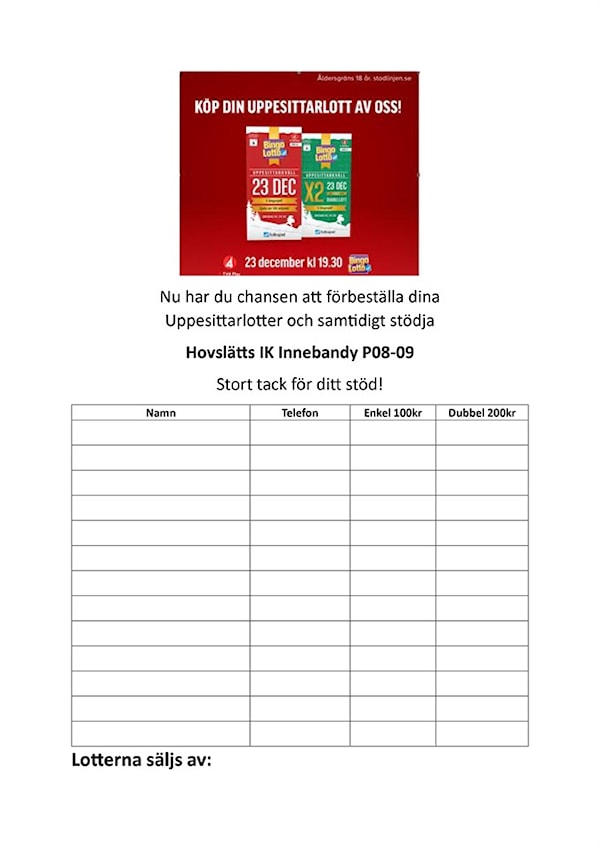 Tobias behöver 3 enkel lotter till. Så totalt 48 enkel och 10 dubbel.