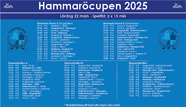 Nedan kommer information och spelschema för Hammaröcupen som spelas lördag 22 mars.