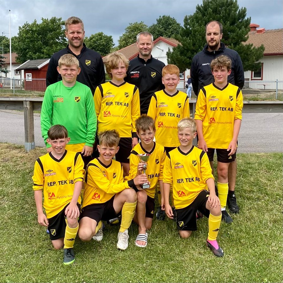 Då var Åsacupen 2023 till ända. Ett äventyr som började redan i torsdags med tältning på Ekäng. Efter varierande antal timmar av sömn, frukost, taktikgenomgång och lunch, begav vi oss i fredags till Åsa för de 3 första matcherna. 3 jämna, välspelade matcher mot lag vi inte vanligtvis spelar mot, skoj! Dagens 2 matcher följde samma mönster, välspelade och det är kul att se hur laget kämpar tillsammans som ett lag. Stort tack till alla föräldrar för dessa dagar! För lån av tält, hjälp med mat, skjutsande och supportande o hejarop på matcherna. Vi hoppas och tror att laget haft roliga dagar, både på och utanför plan! Nu väntar några veckors fotbollsledighet, vi återkommer när träningarna kör igång igen. På bilden saknas Erik och Ebba som var med under fredagen. Fler bilder finns i albumet Åsacupen 2023.